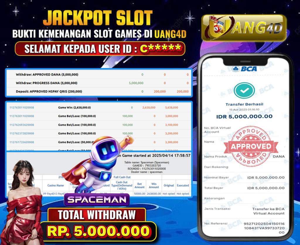 UANG4D JACKPOT LIVE CASINO SPACEMAN 14 APRIL 2025, Kemenangan Casino, Bukti Kemenangan Casino, Kemenangan CasinoPragmatic , Menang CASINO online, Situs Aman Terpercaya, Withdraw Berapapun Pasti DI Bayar Tuntas, Maxwin CASINO Online.