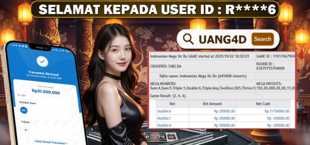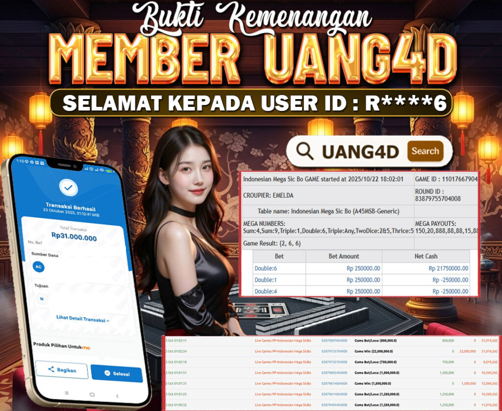 Setiap hari, member UANG4D berhasil meraih jackpot besar dari berbagai macam permainan livecasino ternama yang kami sediakan, seperti Roullete, Dragon & Tiger, Qiu Qiu dan masih banyak lagi. Kami secara rutin menampilkan bukti screenshot atau rekapan kemenangan yang berhasil diraih, mulai dari kemenangan ratusan ribu hingga puluhan juta rupiah. Semua slip kemenangan ini kami hadirkan untuk membuktikan bahwa di UANG4D, peluang menang itu nyata.