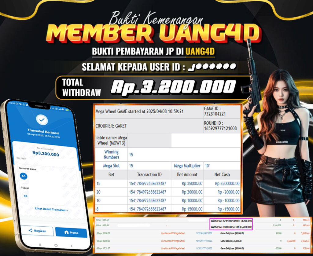 Setiap hari, member UANG4D berhasil meraih jackpot besar dari berbagai macam permainan livecasino ternama yang kami sediakan, seperti Roullete, Dragon & Tiger, Qiu Qiu dan masih banyak lagi. Kami secara rutin menampilkan bukti screenshot atau rekapan kemenangan yang berhasil diraih, mulai dari kemenangan ratusan ribu hingga puluhan juta rupiah. Semua slip kemenangan ini kami hadirkan untuk membuktikan bahwa di UANG4D, peluang menang itu nyata.