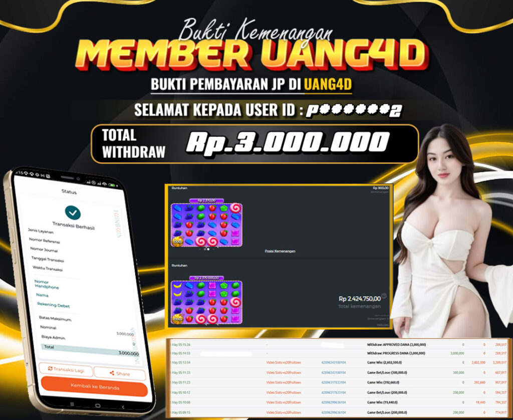 Jangan lewatkan kesempatan untuk meraih kemenangan besar. Daftar sekarang di UANG4D dan rasakan pengalaman bermain slot terbaik yang pernah ada! Putar gulungan, menangkan jackpot, dan jadilah bagian dari komunitas pemain sukses kami!