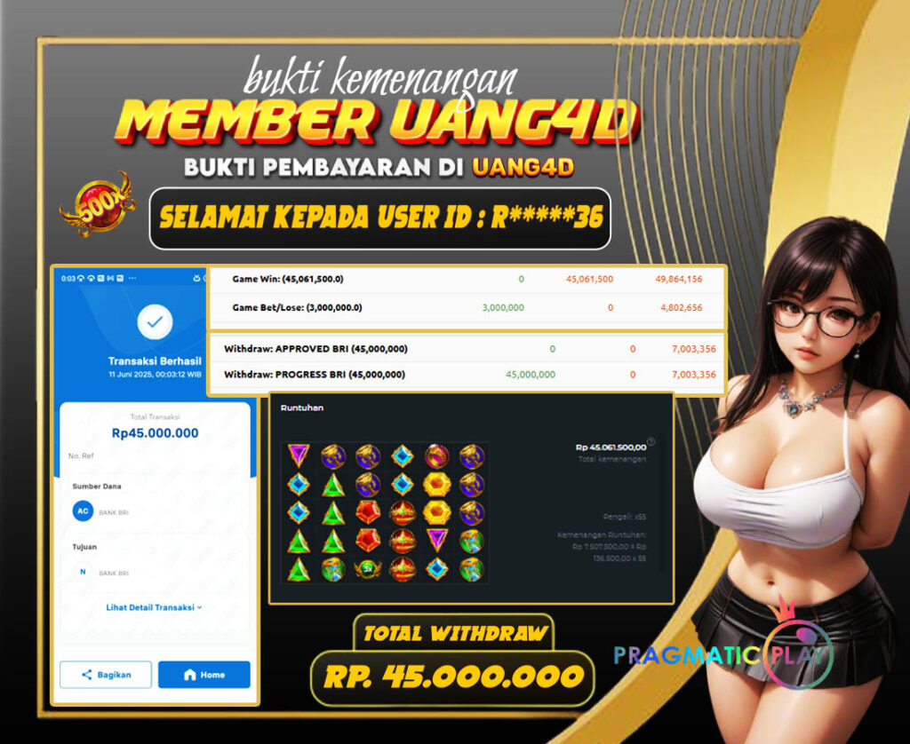 Jangan lewatkan kesempatan untuk meraih kemenangan besar. Daftar sekarang di UANG4D dan rasakan pengalaman bermain slot terbaik yang pernah ada! Putar gulungan, menangkan jackpot, dan jadilah bagian dari komunitas pemain sukses kami!