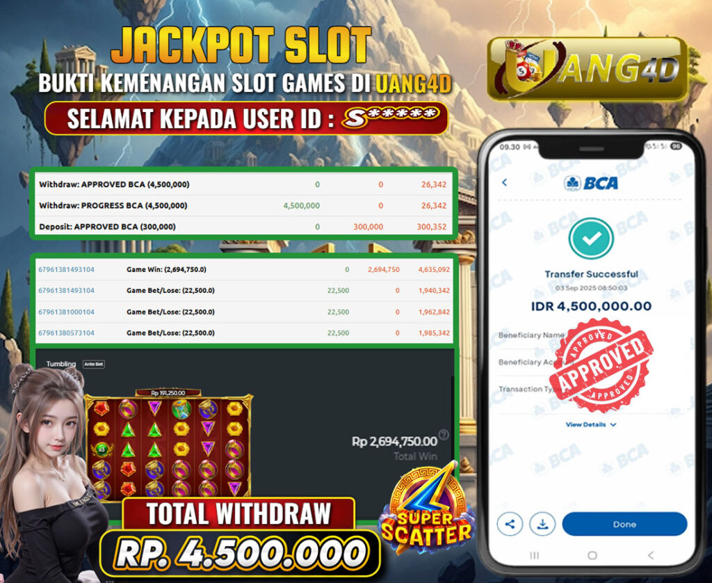 UANG4D –JACKPOT SLOT Gates of Olympus Super Sceter 03 September 2025, Kemenangan Slot, Bukti Kemenangan Slot, Kemenangan Slot Pragmatic Play, Menang Slot online, Slot Gacor, Situs Aman Terpercaya, Withdraw Berapapun Pasti DI Bayar Tuntas, Maxwin Slot Online.