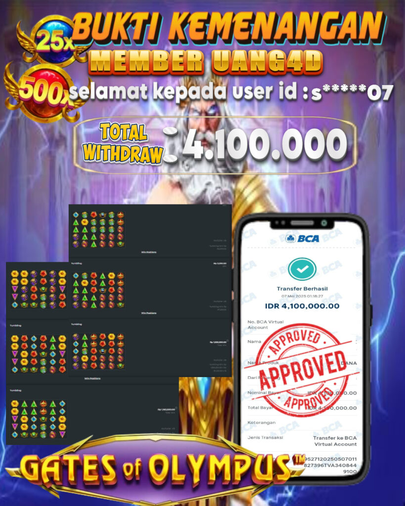 UANG4D –JACKPOT SLOT OLYMPUS 07 MAY 2025, Kemenangan Slot, Bukti Kemenangan Slot, Kemenangan Slot Pragmatic Play, Menang Slot online, Slot Gacor, Situs Aman Terpercaya, Withdraw Berapapun Pasti DI Bayar Tuntas, Maxwin Slot Online.