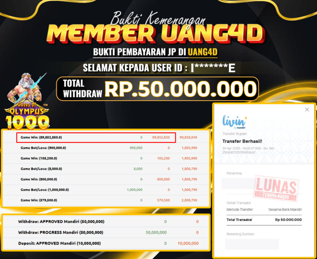UANG4D –JACKPOT SLOT OLYMPUS 1000 30 APRIL 2025, Kemenangan Slot, Bukti Kemenangan Slot, Kemenangan Slot Pragmatic Play, Menang Slot online, Slot Gacor, Situs Aman Terpercaya, Withdraw Berapapun Pasti DI Bayar Tuntas, Maxwin Slot Online.