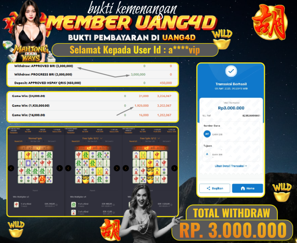 UANG4D – JACKPOT SLOT MAHJONG WAYS 02 APRIL 2025, Jackpot Slot, Kemenangan Slot, Bukti Kemenangan Slot, Kemenangan Slot Pragmatic Play, Menang Slot online, Slot Gacor, Situs Aman Terpercaya, Withdraw Berapapun Pasti DI Bayar Tuntas, Maxwin Slot Online.