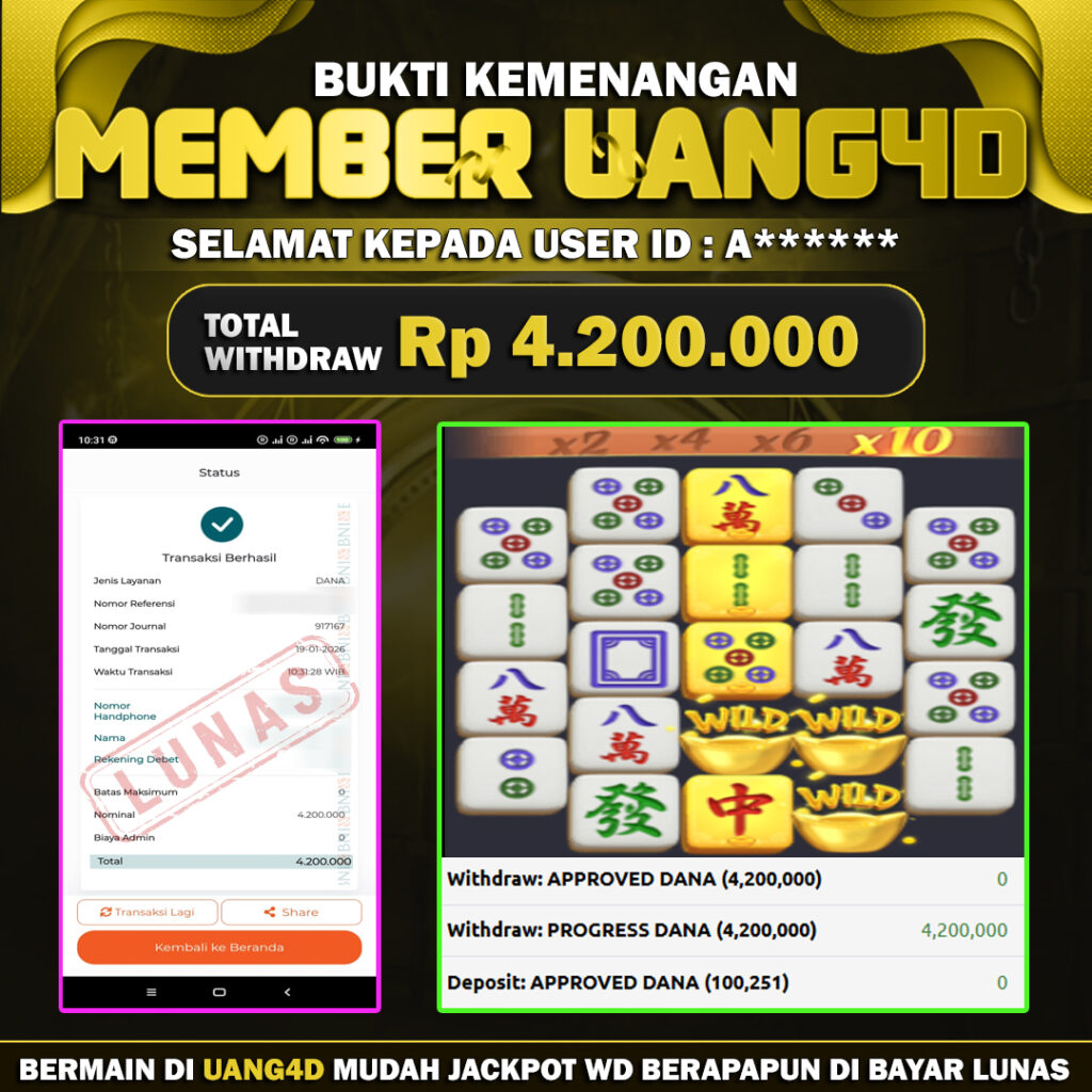 Jangan lewatkan kesempatan untuk meraih kemenangan besar. Daftar sekarang di UANG4D dan rasakan pengalaman bermain slot terbaik yang pernah ada! Putar gulungan, menangkan jackpot, dan jadilah bagian dari komunitas pemain sukses kami!