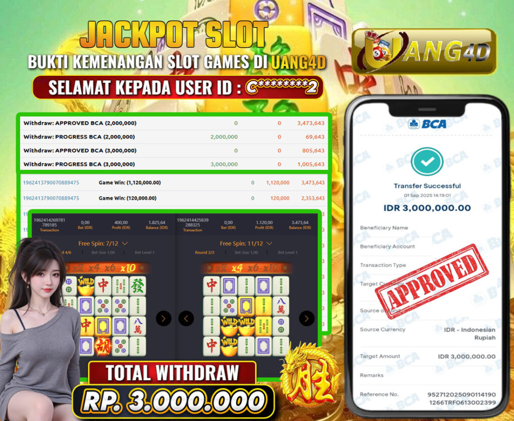 Jangan lewatkan kesempatan untuk meraih kemenangan besar. Daftar sekarang di UANG4D dan rasakan pengalaman bermain slot terbaik yang pernah ada! Putar gulungan, menangkan jackpot, dan jadilah bagian dari komunitas pemain sukses kami!