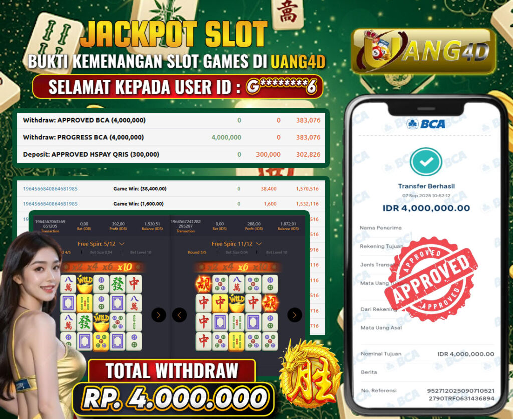 UANG4D JACKPOT SLOT MAHYONG WAYS 07 SEPTEMBER 2025 , Jackpot Slot, Kemenangan Slot, Bukti Kemenangan Slot, Kemenangan Slot PG SOFT Play, Menang Slot online, Slot Gacor, Situs Aman Terpercaya, Withdraw Berapapun Pasti DI Bayar Tuntas, Maxwin Slot Online.