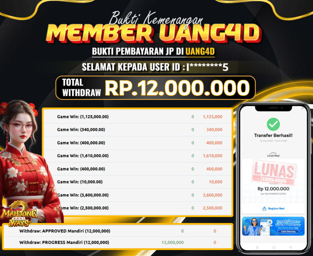 UANG4D –JACKPOT SLOT MAHYONG WAYS 23 DESEMBER 2025 , Jackpot Slot, Kemenangan Slot, Bukti Kemenangan Slot, Kemenangan Slot PG SOFT Play, Menang Slot online, Slot Gacor, Situs Aman Terpercaya, Withdraw Berapapun Pasti DI Bayar Tuntas, Maxwin Slot Online.