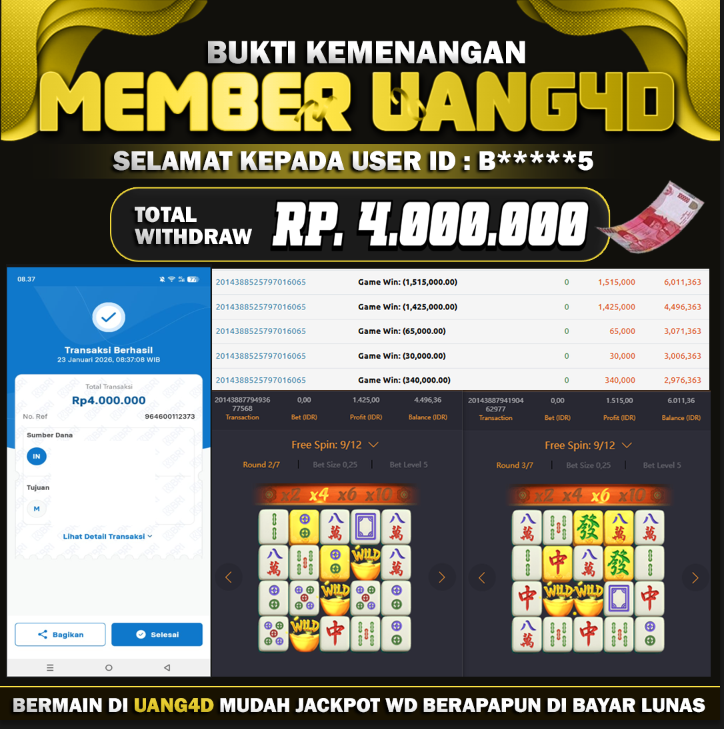 UANG4D –JACKPOT SLOT MAHYONG WAYS 23 JANUARI 2026, Jackpot Slot, Kemenangan Slot, Bukti Kemenangan Slot, Kemenangan Slot PG SOFT Play, Menang Slot online, Slot Gacor, Situs Aman Terpercaya, Withdraw Berapapun Pasti DI Bayar Tuntas, Maxwin Slot Online.