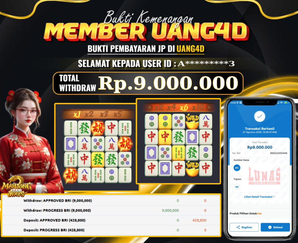 UANG4D – JACKPOT SLOT MAHYONG WAYS 27 AGUSTUS 2025 , Jackpot Slot, Kemenangan Slot, Bukti Kemenangan Slot, Kemenangan Slot PG SOFT Play, Menang Slot online, Slot Gacor, Situs Aman Terpercaya, Withdraw Berapapun Pasti DI Bayar Tuntas, Maxwin Slot Online.