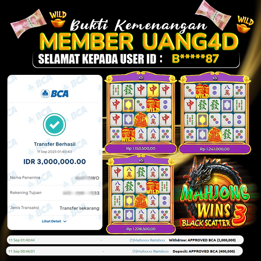 UANG4D – JACKPOT SLOT MAHYONG WAYS 3 (Black Scatter) 11 SEPTEMBER 2025 , Jackpot Slot, Kemenangan Slot, Bukti Kemenangan Slot, Kemenangan Slot Pragmatic Play, Menang Slot online, Slot Gacor, Situs Aman Terpercaya, Withdraw Berapapun Pasti DI Bayar Tuntas, Maxwin Slot Online.