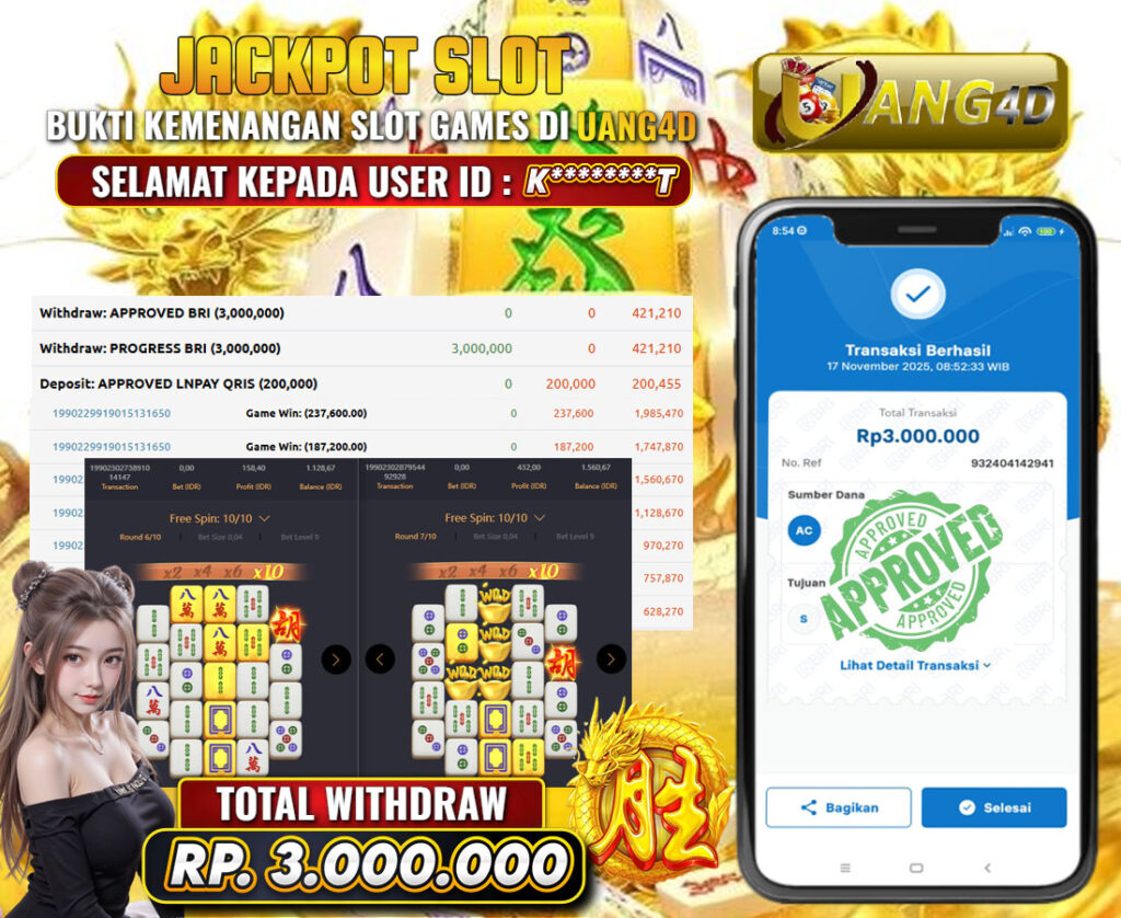 Jangan lewatkan kesempatan untuk meraih kemenangan besar. Daftar sekarang di UANG4D dan rasakan pengalaman bermain slot terbaik yang pernah ada! Putar gulungan, menangkan jackpot, dan jadilah bagian dari komunitas pemain sukses kami!