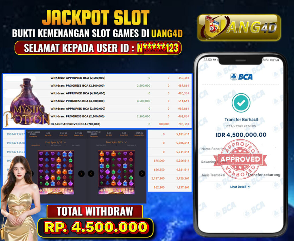UANG4D JACKPOT SLOT MYSTIC POTIONS 03 APRIL 2025, Jackpot Slot, Kemenangan Slot, Bukti Kemenangan Slot, Kemenangan Slot Pragmatic Play, Menang Slot online, Slot Gacor, Situs Aman Terpercaya, Withdraw Berapapun Pasti DI Bayar Tuntas, Maxwin Slot Online.