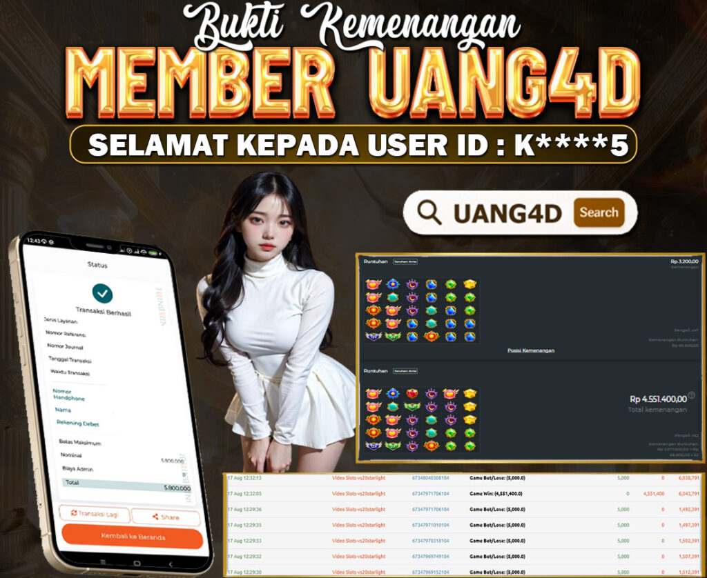 Jangan lewatkan kesempatan untuk meraih kemenangan besar. Daftar sekarang di UANG4D dan rasakan pengalaman bermain slot terbaik yang pernah ada! Putar gulungan, menangkan jackpot, dan jadilah bagian dari komunitas pemain sukses kami!
