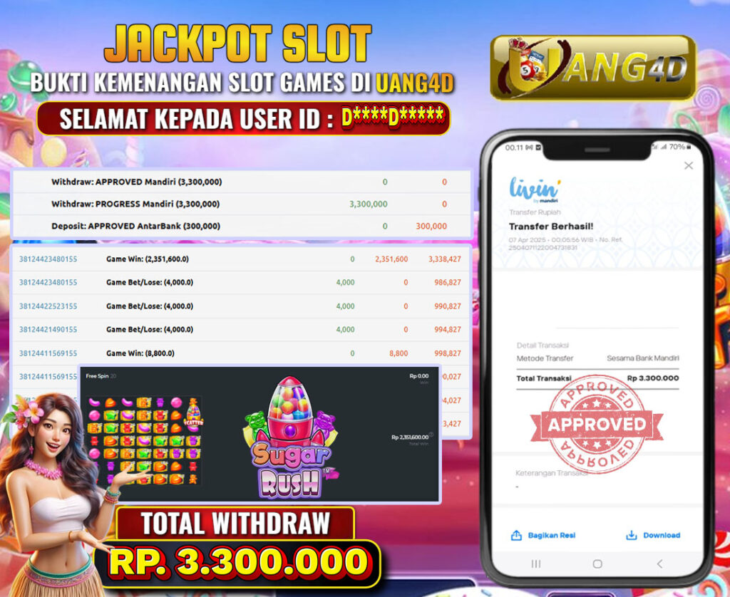 UANG4D – JACKPOT SLOT SUGAR RUSH 07 APRIL 2025, Jackpot Slot, Kemenangan Slot, Bukti Kemenangan Slot, Kemenangan Slot PG Soft, Menang Slot online, Slot Gacor, Situs Aman Terpercaya, Withdraw Berapapun Pasti DI Bayar Tuntas, Maxwin Slot Online.