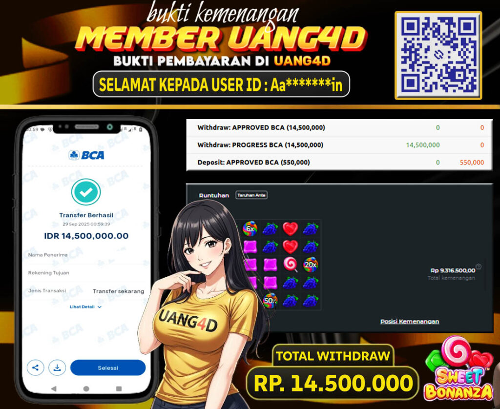 UANG4D –JACKPOT SLOT SWEET BONANZA 29 SEPTEMBER 2025 Kemenangan Slot, Bukti Kemenangan Slot, Kemenangan Slot Pragmatic Play, Menang Slot online, Slot Gacor, Situs Aman Terpercaya, Withdraw Berapapun Pasti DI Bayar Tuntas, Maxwin Slot Online.