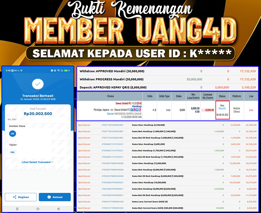 UANG4D JACKPOT SPORT SOCCER 13 JANUARI 2026, Jackpot Sport Akurat, Kemenangan Sport , Bukti Kemenangan Sport, Kemenangan Sport-Soccer, Menang sport online, , Situs Aman Terpercaya, WD Berapapun Pasti DI Bayar Tuntas,
