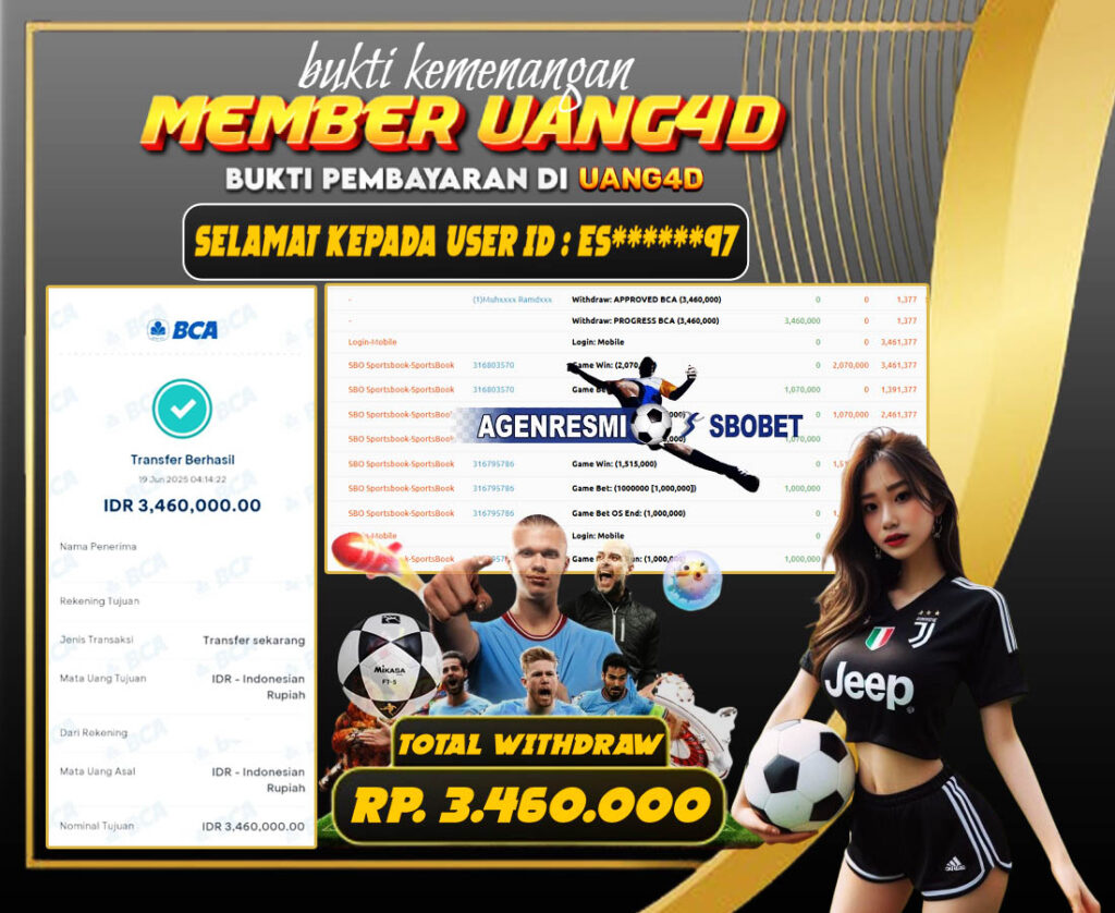 Selamat Kepada Member Yang Berhasil Mendapatkan Kemenangan Dipermainan SBO Sportbook Hari Ini, Berikut Bukti SS Jackpot Member Di Situs UANG4D