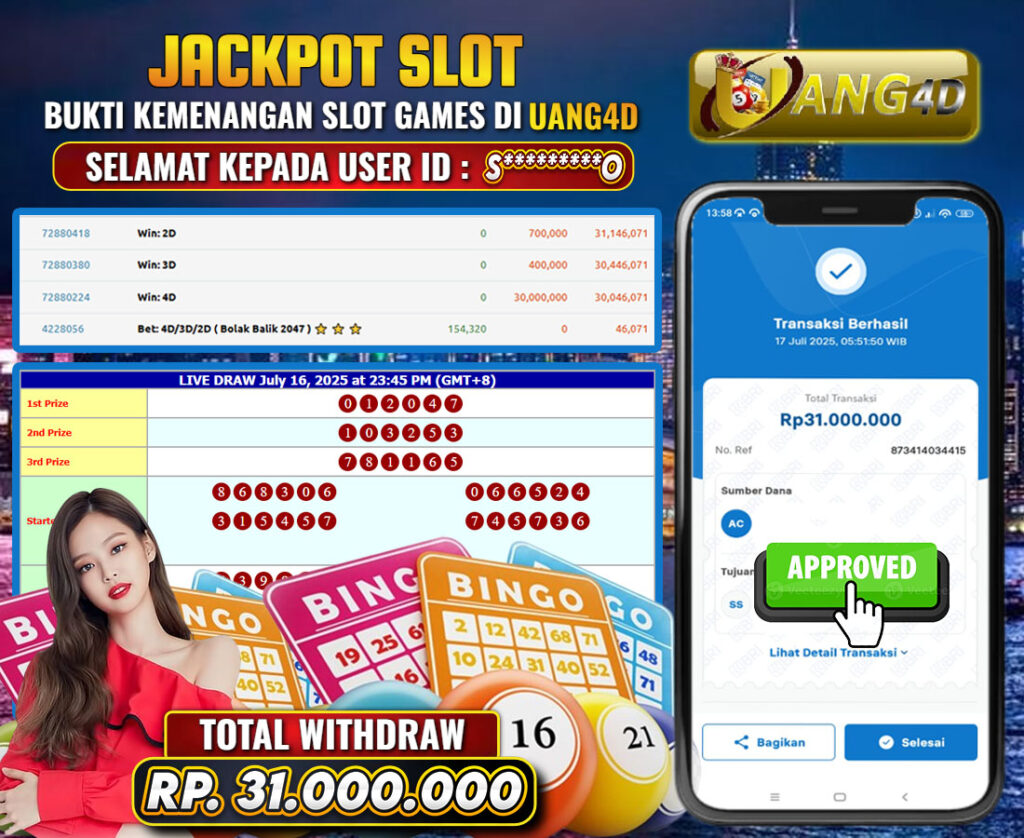 UANG4D dikenal sebagai situs terpercaya yang selalu menghadirkan pengalaman bermain slot online yang aman, fair, dan berlisensi resmi. Di sini, kami tidak hanya sekadar memberikan janji, tapi bukti nyata berupa slip kemenangan yang dapat Anda lihat secara langsung.