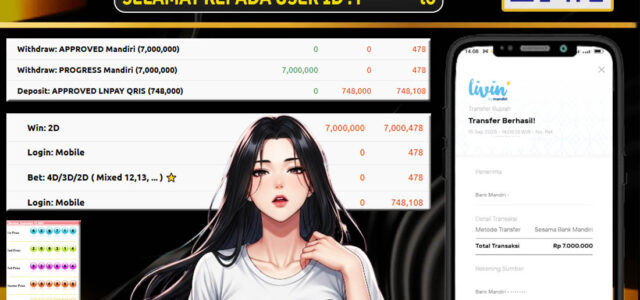 Setiap hari, member UANG4D berhasil meraih jackpot besar dari berbagai provider togel ternama yang kami sediakan, seperti Sydney, Singapore, Hongkong dan masih banyak lagi. Kami secara rutin menampilkan bukti screenshot atau rekapan kemenangan yang berhasil diraih, mulai dari kemenangan ratusan ribu hingga puluhan juta rupiah. Semua slip kemenangan ini kami hadirkan untuk membuktikan bahwa di UANG4D, peluang menang itu nyata.