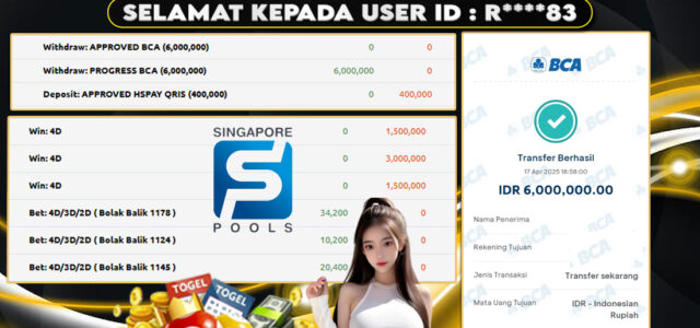 JACKPOT TOGEL SINGAPORE POOLS 17 APRIL 2025, Jackpot Togel Akurat, Kemenangan Togel, Bukti Kemenangan Togel, Kemenangan Togel SINGAPORE , Menang Togel online, Togel Gacor, Situs Aman Terpercaya, WD Berapapun Pasti DI Bayar Tuntas, Maxwin Togel Online.