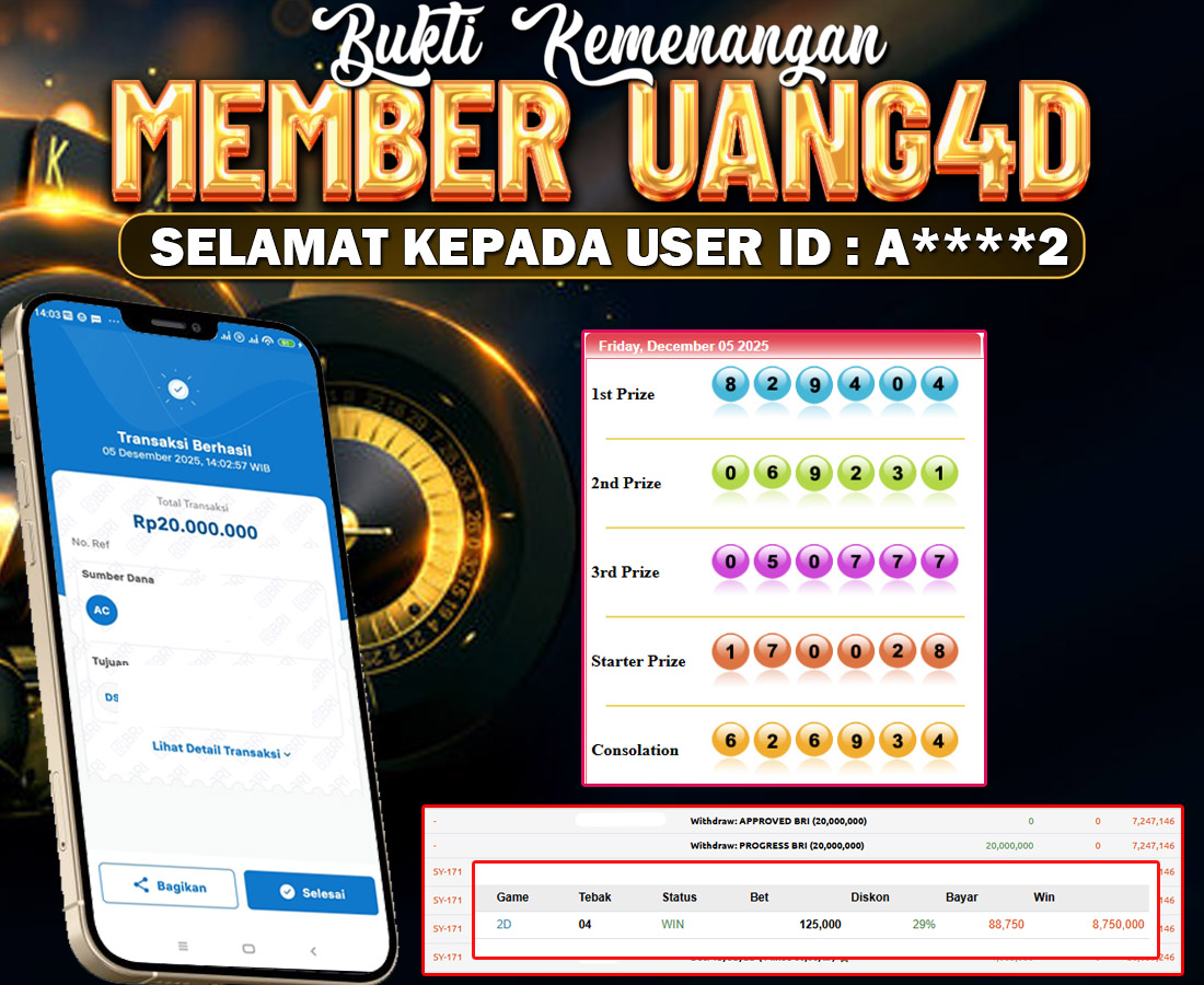 Setiap hari, member UANG4D berhasil meraih jackpot besar dari berbagai provider togel ternama yang kami sediakan, seperti Sydney, Singapore, Hongkong dan masih banyak lagi. Kami secara rutin menampilkan bukti screenshot atau rekapan kemenangan yang berhasil diraih, mulai dari kemenangan ratusan ribu hingga puluhan juta rupiah. Semua slip kemenangan ini kami hadirkan untuk membuktikan bahwa di UANG4D, peluang menang itu nyata.