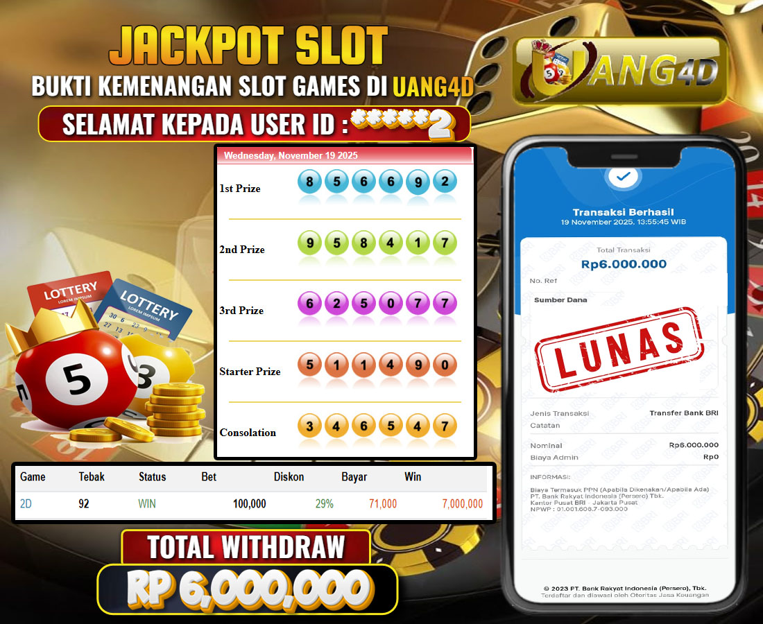 Setiap hari, member UANG4D berhasil meraih jackpot besar dari berbagai provider togel ternama yang kami sediakan, seperti Sydney, Singapore, Hongkong dan masih banyak lagi. Kami secara rutin menampilkan bukti screenshot atau rekapan kemenangan yang berhasil diraih, mulai dari kemenangan ratusan ribu hingga puluhan juta rupiah. Semua slip kemenangan ini kami hadirkan untuk membuktikan bahwa di UANG4D, peluang menang itu nyata.